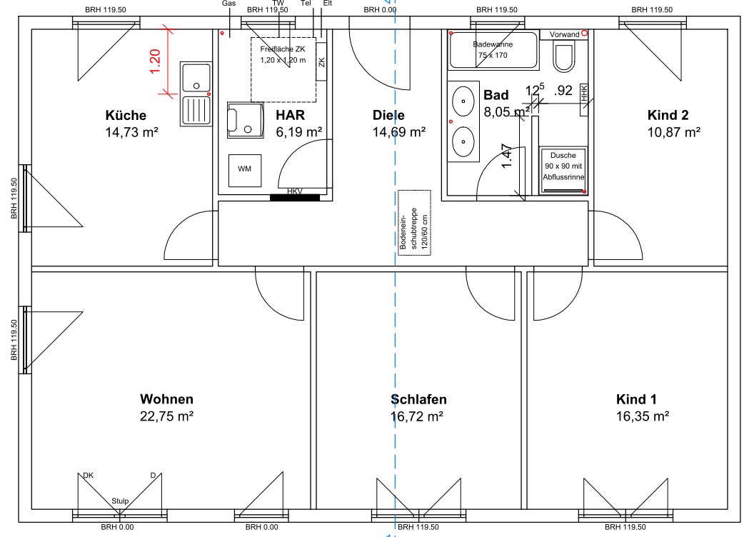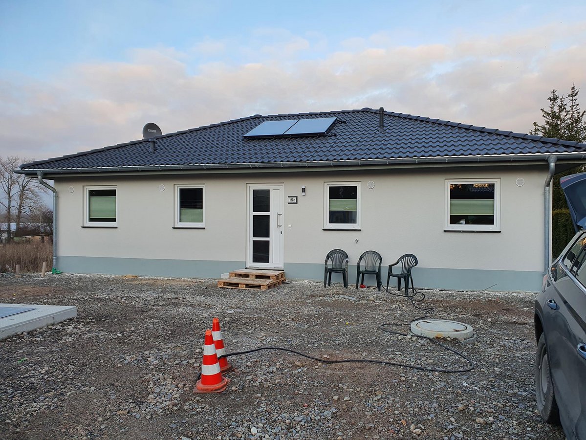 Hier spielt sich alles auf einer Wohnebene ab - Für eine Familie mit zwei Kindern ist der Bungalow 110 ein ideales Zuhause. Er bietet ein gemütliches Wohnzimmer mit Essbereich, ein geräumiges Schlafzimmer und zwei weitere Zimmer. Alle Räume sind dank großer Fenster hell und freundlich. Mit quasi einem Schritt sind Sie mit Ihren Liebsten im Garten und können die Sommerzeit bei einem Grillabend genießen. Das schöne Walmdach gibt dem Bungalow seinen Charakter. Der Bungalow 110 ist ein perfekter Ort für Menschen, die die gegenseitige Nähe lieben und zugleich ihren individuellen Platz schätzen. Hier können Sie stufenlos glücklich sein.