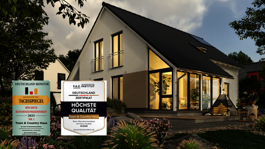 Mit der Auszeichnung „Transparenz 2025“, vergeben vom F.A.Z.-Institut in Kooperation mit ServiceValue, wird schließlich die Offenheit und Klarheit im Unternehmens- und Bauprozess hervorgehoben. Bewertet wurde, wie verständlich Unternehmen über Preise, Leistungen, Abläufe und Werte kommunizieren und wie transparent der Dialog mit Kunden gestaltet ist. Vom ersten Beratungsgespräch bis zur Schlüsselübergabe. Die Anerkennung bestätigt, dass Town & Country Haus nicht nur solide Bauqualität bietet, sondern auch durch klare Kommunikation und nachvollziehbare Prozesse überzeugt.