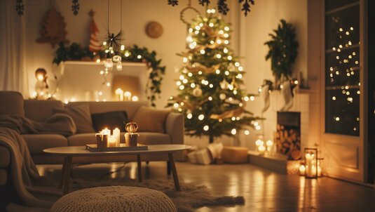 Die Auswahl der richtigen Lichtquellen spielt in der Weihnachtszeit 2025 ebenfalls eine entscheidende Rolle. Setzen Sie statt auf grelles, kühl wirkendes Licht besser auf eine sanfte, warme Beleuchtung. LED-Kerzen mit Flammeneffekt, kleine Laternen und Lichterketten sowie minimalistische Light-Globes schaffen eine ruhige, behagliche Atmosphäre. Kerzen aus Soja- oder Bienenwachs fügen sich ebenfalls perfekt in das weihnachtliche Gesamtbild ein und verbreiten ein natürlich warmes Licht.