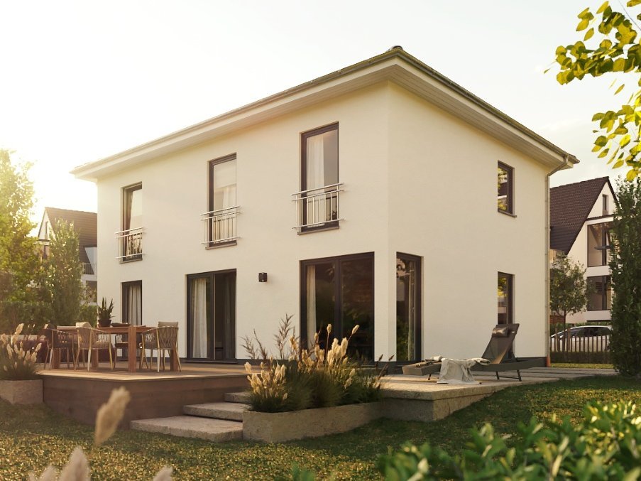 Das Stadthaus Flair 152 RE bringt gradliniges Design und maximale Helligkeit unter ein Dach – von der offenen Wohnküche für Gourmets bis zur smarten Ankleide im Obergeschoss. Hier trifft „Home-Office-Ruhe“ auf lebendiges Familienglück.