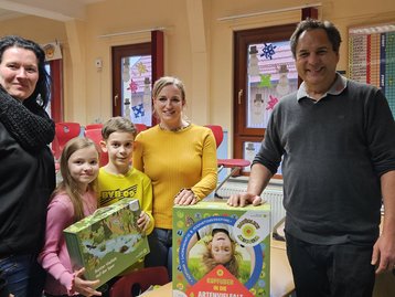 Die Grundschule Kaltenwestheim erhält ein XL-Wimmelbild und ein Artenspiel namens „Natürlich verdreht“